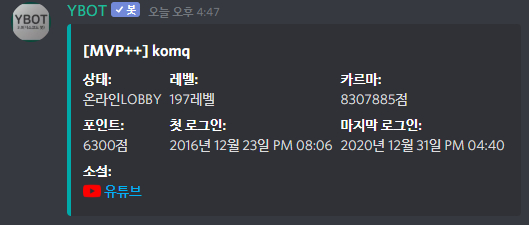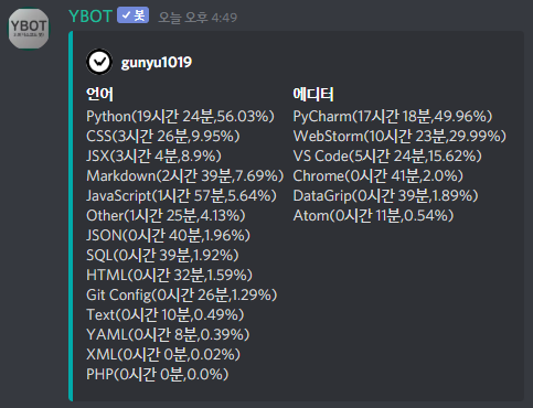 사실 MBOT이라는 다른 프로젝트에 통계 기능을 넣을려고 아예 추가를 고려하지 않았지만 상대적으로 일부 기능만 추가하는건 괜찮다고 생각해서 추가하게 되었습니다.