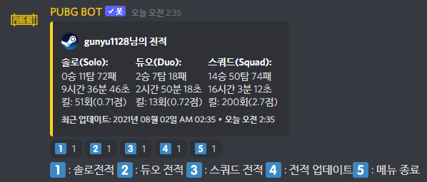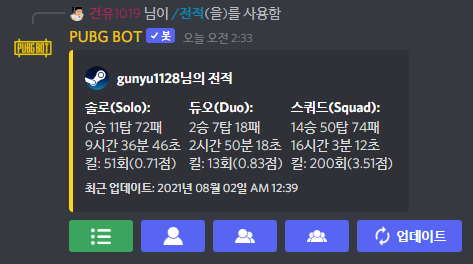 PUBG BOT이 드디어 빗금 명령어을 지원 합니다.